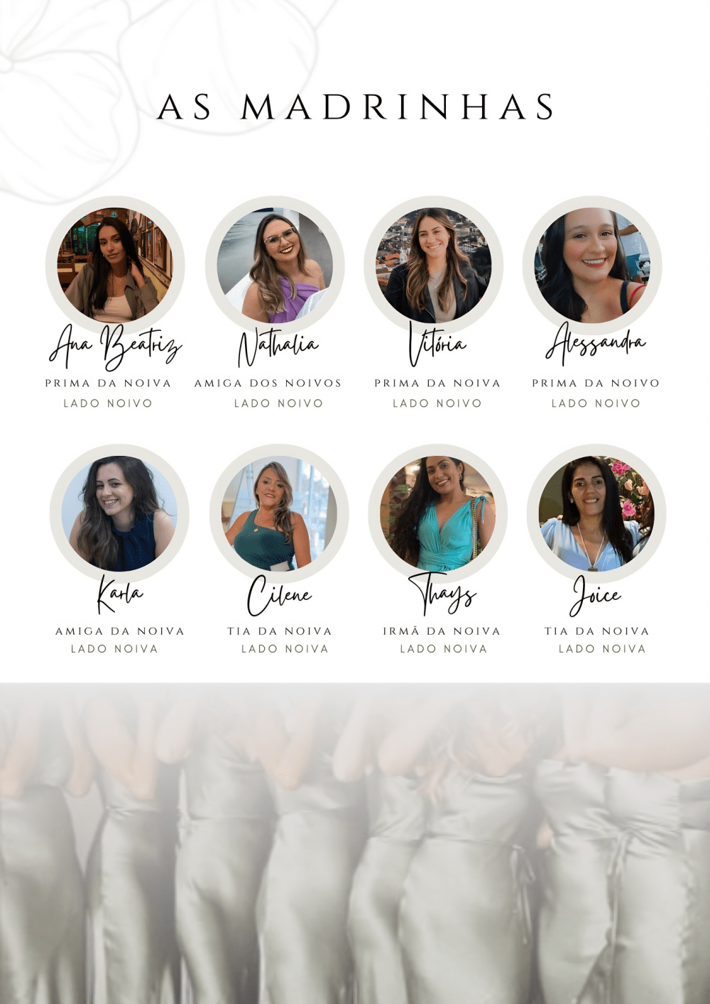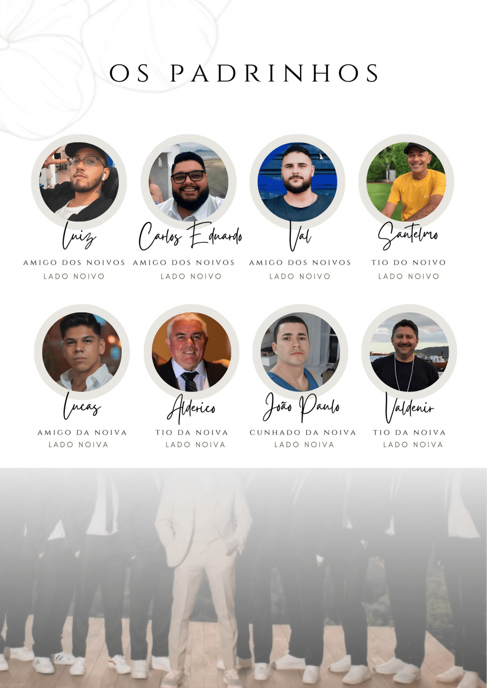 Aos nossos queridos padrinhos: É uma emoção única e indescritível tê-los ao nosso lado e poder partilhar com vocês toda felicidade dessa nova etapa em nossas vidas: nosso casamento! Por isso, desejamos tê-los como testemunhas do nosso sonho e do nosso amor!